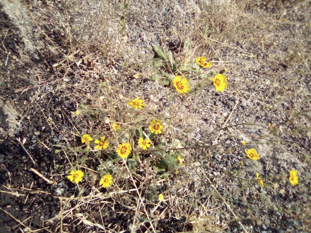 Madia is regularly seen along roadsides, in uncultivated fields, and in disturbed areas. It is native to California and the West and a similar alien species Madia sativa, is found on the coasts. The flowers open up in the mornings and face the sun and then curl up in the heat of the afternoon and at night. Around here they bloom for most of the summer and as you can see they linger into autumn.