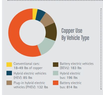 A battery-powered, all-electric vehicle (BEV) needs much more copper than a conventional vehicle. 183 is ten times bigger than 18 and nearly four times bigger than 49. No matter how much copper your car needs now your future electric vehicle will need a lot more.
