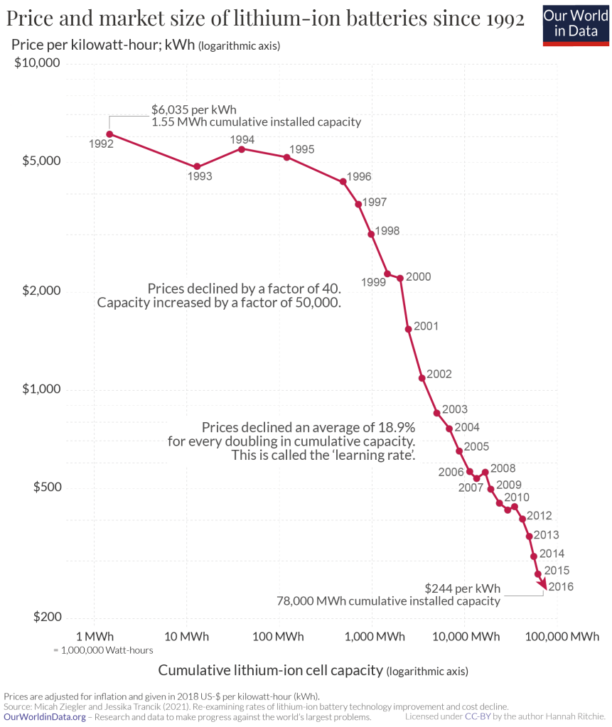We’ve all used Li-ion batteries and battery packs in rechargeable and cordless products. They are everywhere. And their use will continue to grow. Wood Mackenzie says we’ll use five times more than we use now by 2030. Those folks are in the forecasting business so maybe they know something. It certainly isn’t hard to imagine our society wanting more of something! A look at the graph below will show you the impact of all that demand for Li-ion batteries—capitalism in action.