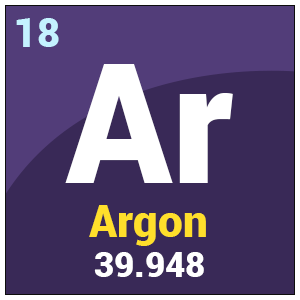 Argon is one of the inert gases. Once they were called “noble” gases because they apparently didn’t mix with the more “common” elements! It actually is possible to create compounds with argon but it’s not something of much interest. Argon gas makes up about one percent of our atmosphere. One percent may not sound like much but the earth is big and it is surrounded by a big ring of gases so there is a lot of argon in our world.