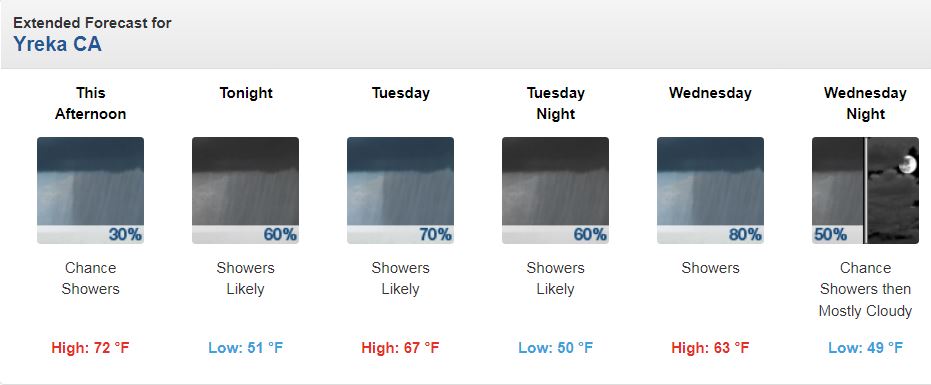 We had some rain already and that’s great but I really hope we get some more. It sure was nice to see new snow on Mt Shasta today. Even better is the air quality—we are finally free of smoke. Of course if the weather continues to cool the wood stoves will get fired up all over town and we’ll be inhaling the stuff again! Actually the forecast suggests we’ll be back to our more familiar warm and dry September experience once this autumnal interlude ends.